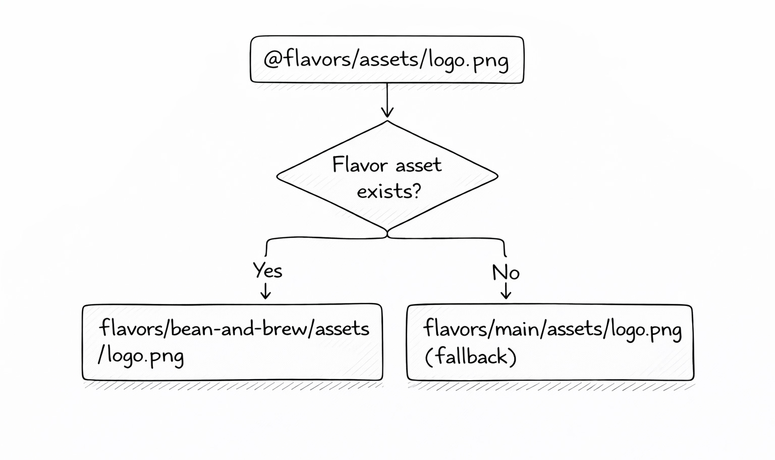 };The fallback is important. If bean-and-brew it doesn’t have a custom onboarding-bg.png, It falls back to main version. This keeps flavor folders lean — you only override what’s different. A flavor might only need a custom icon, splash, and theme. Everything else inherits from min.