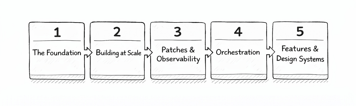 We start at the foundation: how one codebase becomes many apps through configuration.